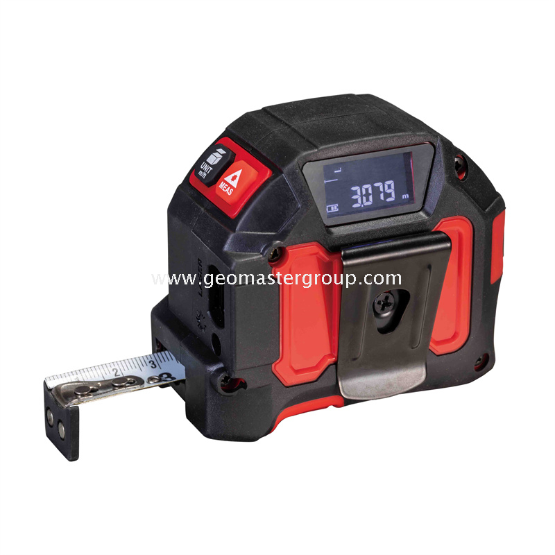 1) 2 في 1: مقياس مسافة الليزر (40 م) + شريط قياس فولاذي (5 م)